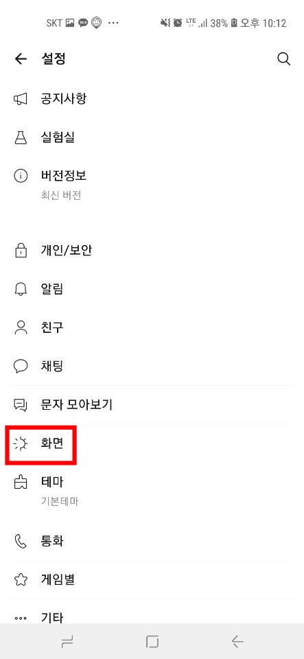 ▼전체 설정에 들어가시게 되면 여러 목록들이 보이는데요. 좀 아래에 있는 화면 목록을 터치해 줍니다.