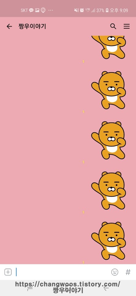 ▼이제 뒤로가기를 눌러 아무 카카오톡 채팅방에 들어가 보시면 카톡 배경화면 바꾸기가 완료됩니다. 전 취향상 핑크색으로 바꿨지만 여러분은 원하는 배경화면색으로 변경해 주시면 됩니다.