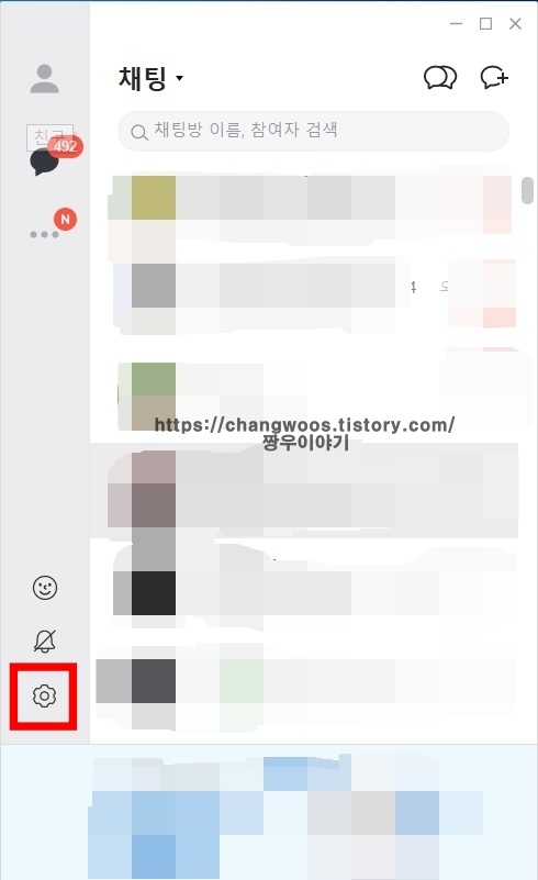 ▼먼저 PC에서 카카오톡 앱을 실행하고 왼쪽 아래의 톱니바퀴(옵션) 버튼을 터치해 줍니다.
