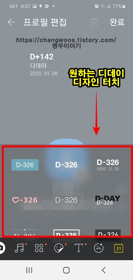 ▼아래에서 원하는 디데이 모양(디자인)을 터치해 줍니다.