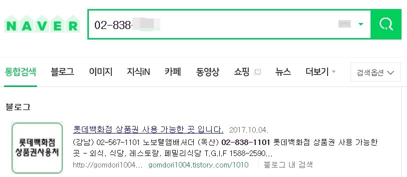 이제 네이버 홈페이지에서 전화번호를 입력해 보겠습니다. 같은 번호로 검색해 보니 블로그나 카페, 뉴스 기사 등의 먼저 나오게 되는데요. 밑으로 화면을 조금 내려보니 주소와 지도를 확인할 수 있었습니다. 번호에 따라 조금씩 다른데 대부분 주소를 먼저 표시해 주지는 않는 거 같습니다.