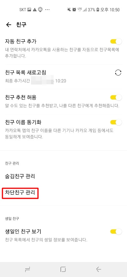 하단에 위치한 차단친구 관리를 클릭합니다.