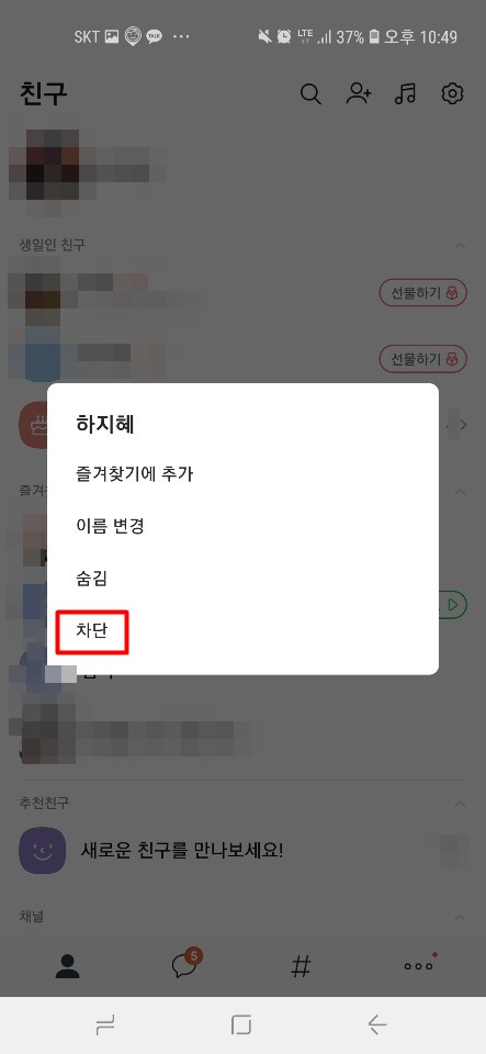 저는 차단한 친구를 1명을 임의로 설정해서 설명드리겠습니다
