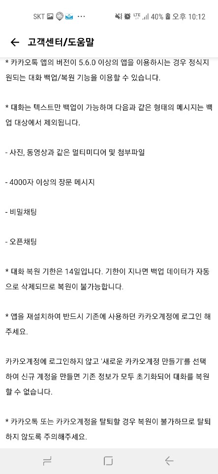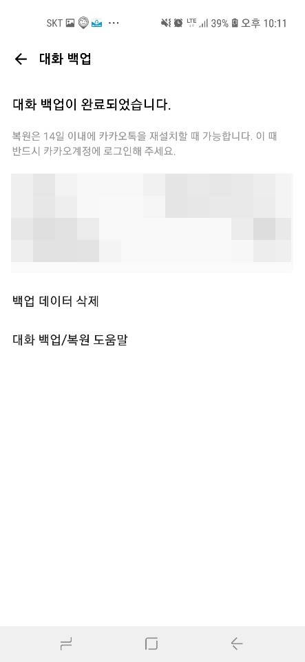 ■ 대화 복원기한인 14일을 넘을경우(백업 데이터 자동삭제)