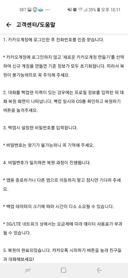 카카오톡 복구 안되는 경우
