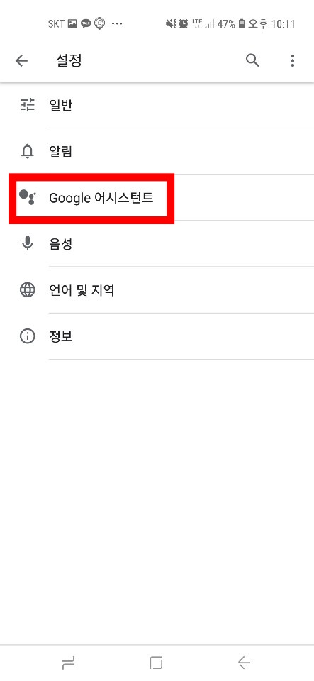 ▼그럼 Google 어시스턴트 메뉴가 보이는데 이 구글 어시스턴트 메뉴를 선택해 줍니다.