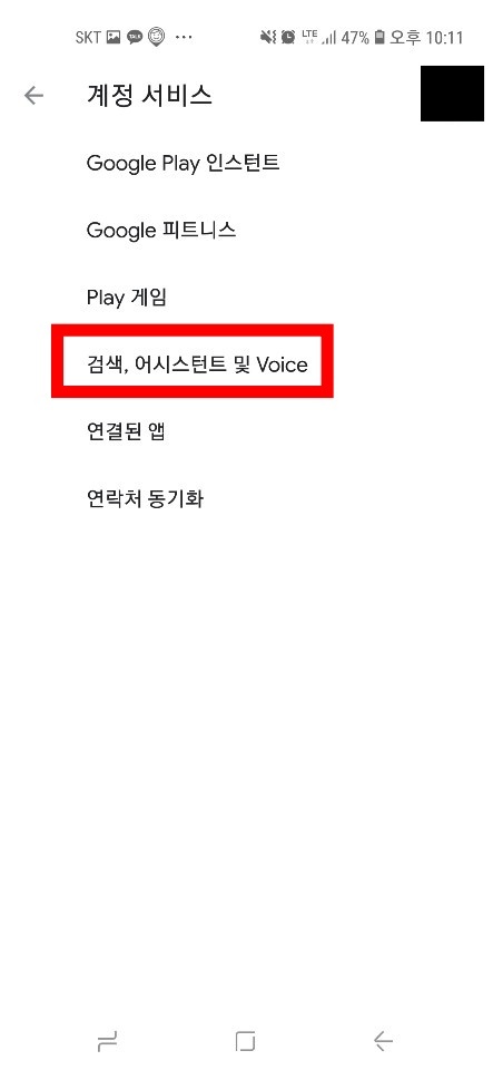 ▼계정서비스에서 검색, 어시스턴트 및 Voice 메뉴를 선택합니다.