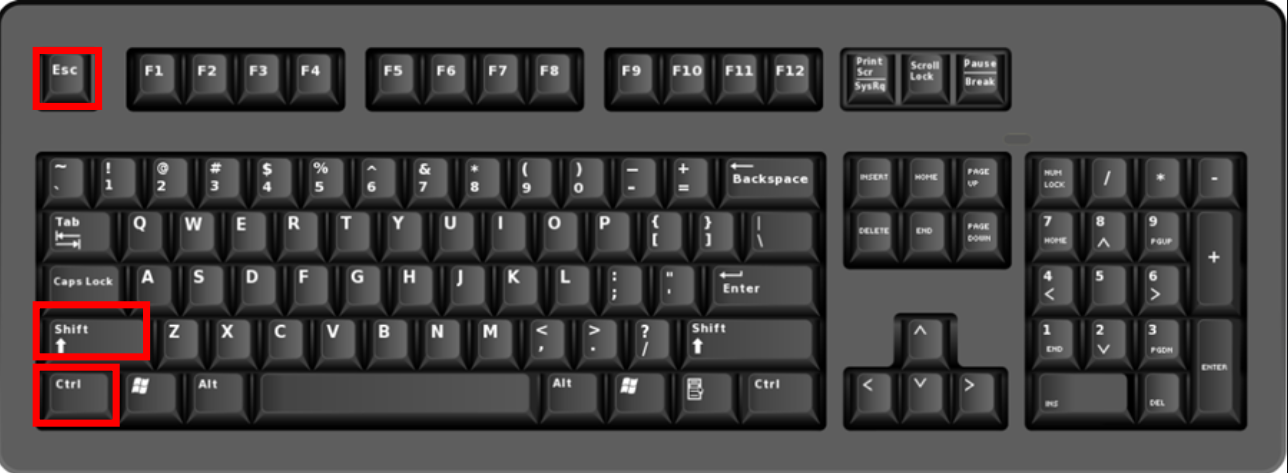 ▼작업관리자 실행을 위한 단축키는 Ctrl+Shift+Esc 를 사용합니다. 동시에 눌러도 실행되긴 하지만 Shift와 Ctrl를 누른 상태로 Esc를 눌러야 정확하게 실행됩니다.