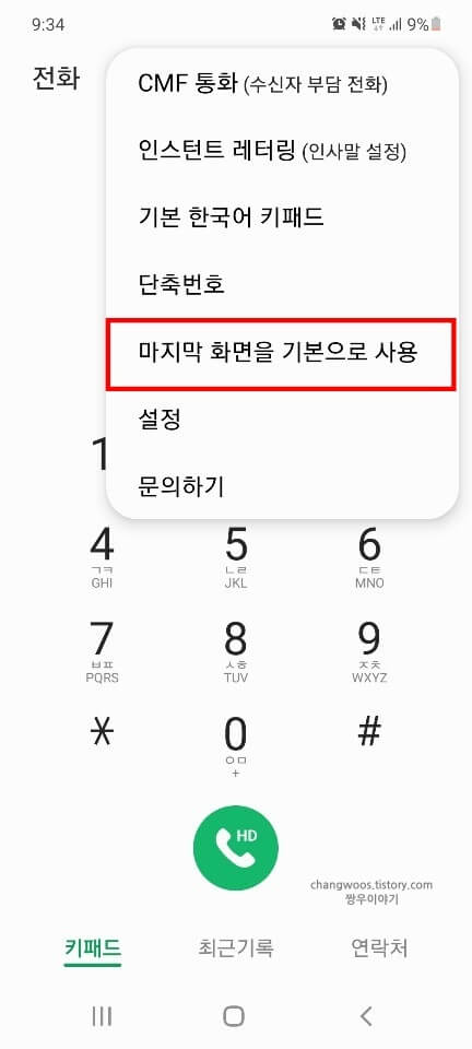 이제 전화 앱에 들어가 보시면 항상 키패드 화면만이 뜨는 것을 확인하실 수 있습니다.